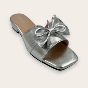 Elevate your footwear collection with these elegant metallic sandals. Featuring a shimmering finish and a stylish bow design, they are the perfect choice for any festive occasion.